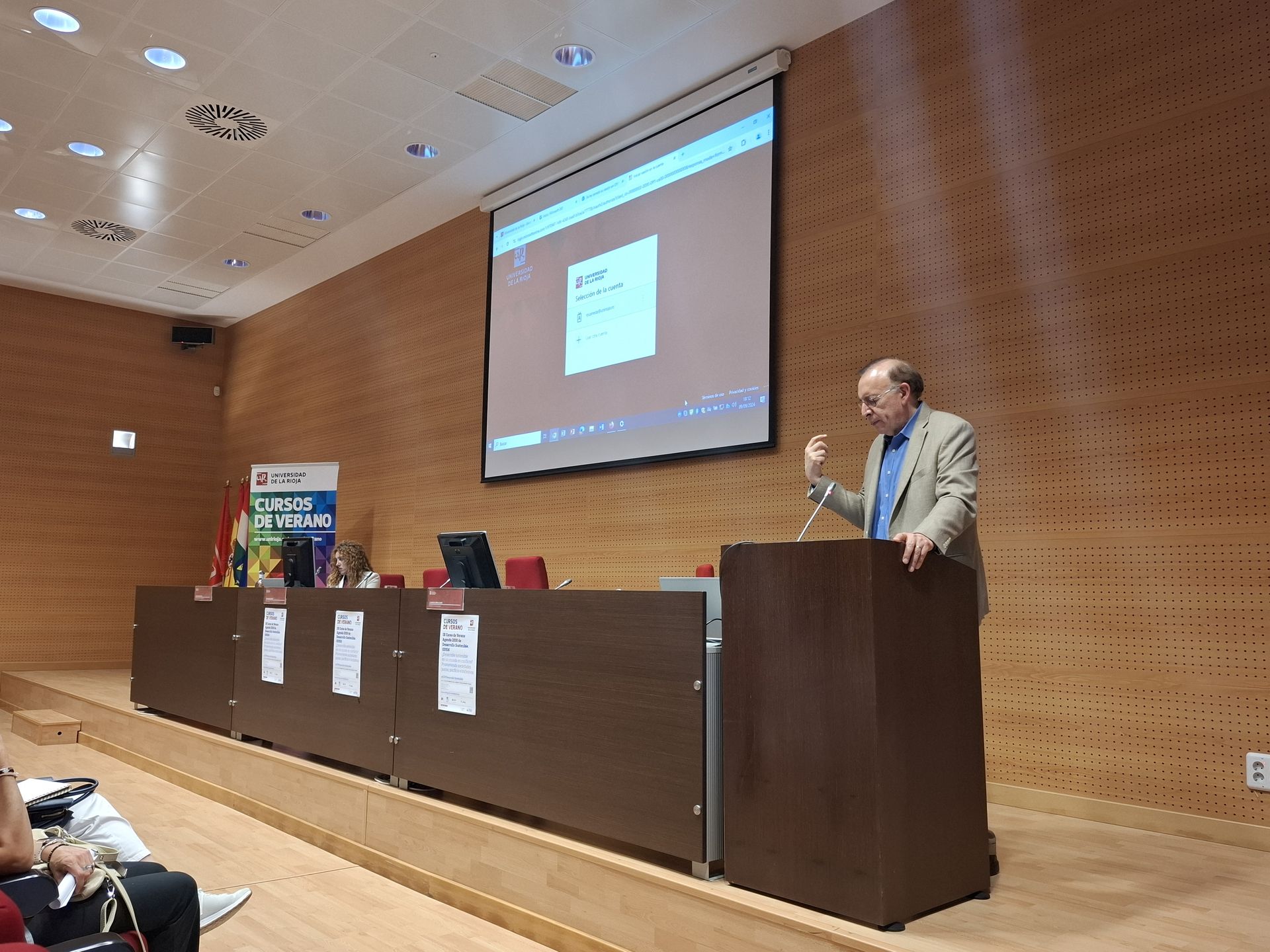 Ana Ganuza, durante el acto de inauguración, expresó que "es un honor dirigirme a quienes están aquí en la inauguración de este IX Curso de Verano de la Universidad de La Rioja, que trata un tema crucial para nuestro presente y futuro: el desarrollo sostenible a través de la promoción de sociedades justas, pacíficas e inclusivas, en un mundo marcado por conflictos y crisis interrelacionadas como la crisis social, económica, la desigualdad creciente, el empleo, los cuidados, los recursos, la biodiversidad y el cambio climático".