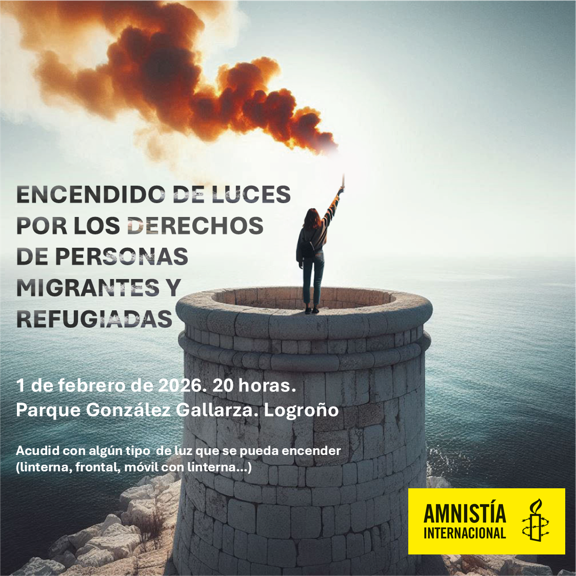 Amnistía Internacional La Rioja invita a la ciudadanía a participar en un acto simbólico en defensa de los derechos de las personas migrantes y refugiadas, que tendrá lugar el domingo 1 de febrero a las 20:00 horas en el Parque González Gallarza de Logroño.