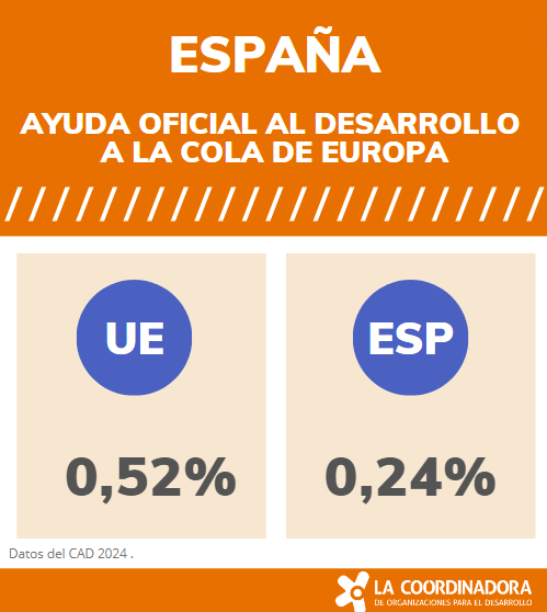 España continúa estancada la cola de Europa en materia de cooperación. Muy lejos del compromiso del 0,7%, alcanza apenas el 0,24% frente a la media europea que alcanza el 0,52%. Mucho camino por recorrer y muchas palabras por cumplir si realmente queremos apostar por políticas internacionalmente responsables, solidarias y a la altura de los retos globales del S. XXI.