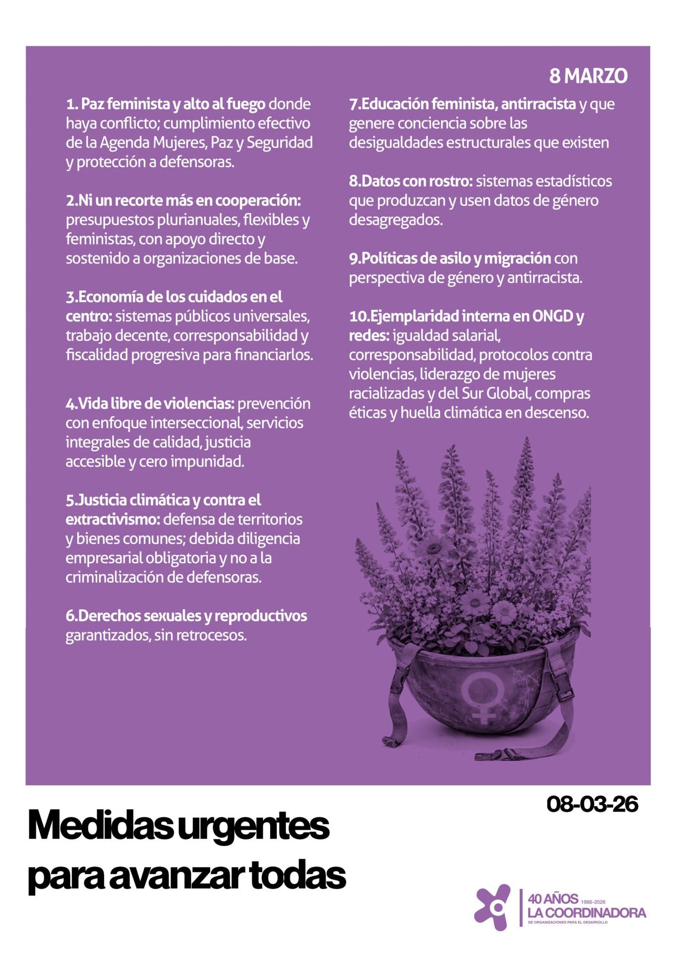 Especial 8 de Marzo de 2026 de La Coordinadora de Organizaciones para el Desarrollo.